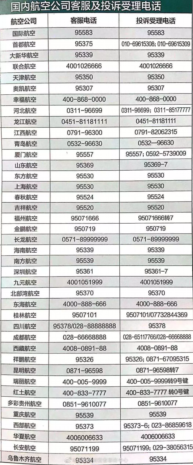 航空公司客服热线请收好: