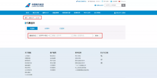 中国南方航空网站截图