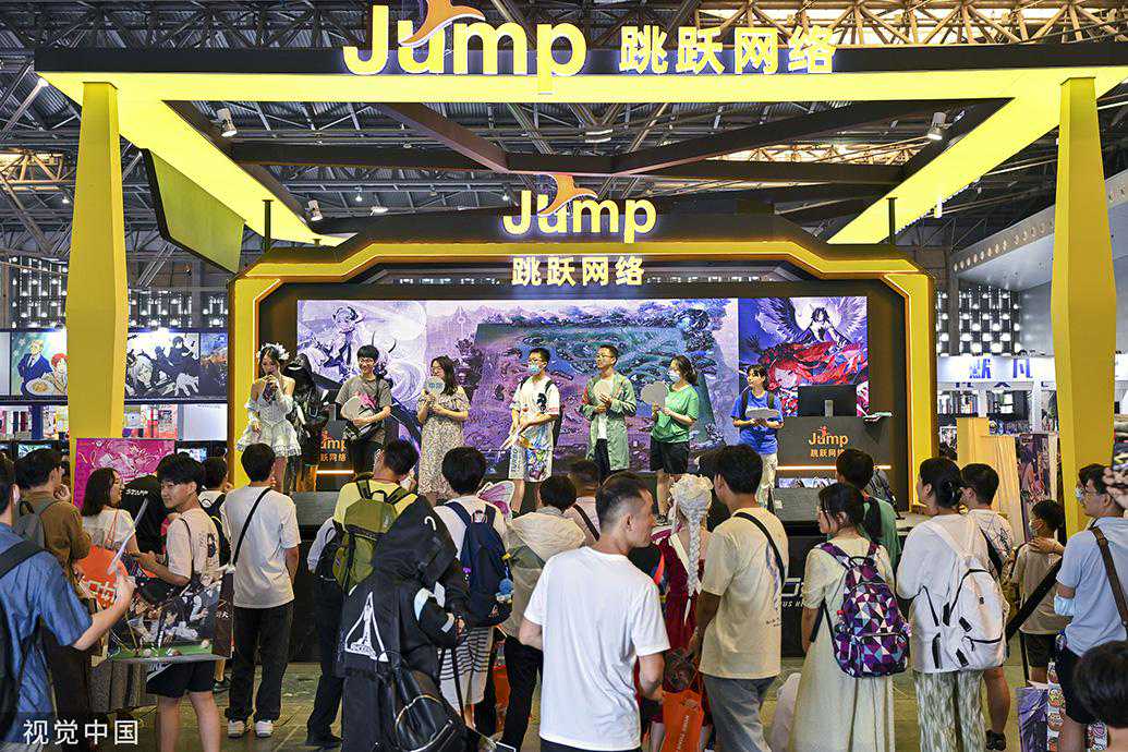 2023年7月13日,第十八届中国国际动漫游戏博览会(CCGEXPO2023)在上海世博展览馆开幕,跳跃网络展台。