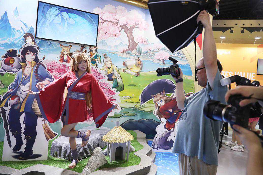 2023年7月13日,第十八届中国国际动漫游戏博览会,现场"Showgirl"引来观众驻足拍照。