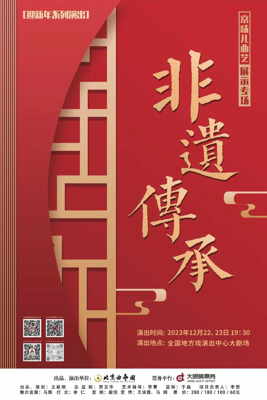 北京曲艺团作为多项非遗项目传承保护单位,即将带来连续两场的非遗传承人展示专场,汇集了团内多位中青年非物质文化遗产代表性传承人,集中展示了多个曲种的经典唱段,不仅演员阵容强大,节目更是曲韵十足,丰富的曲艺大餐将陪伴您度过寒冷的冬日时光。