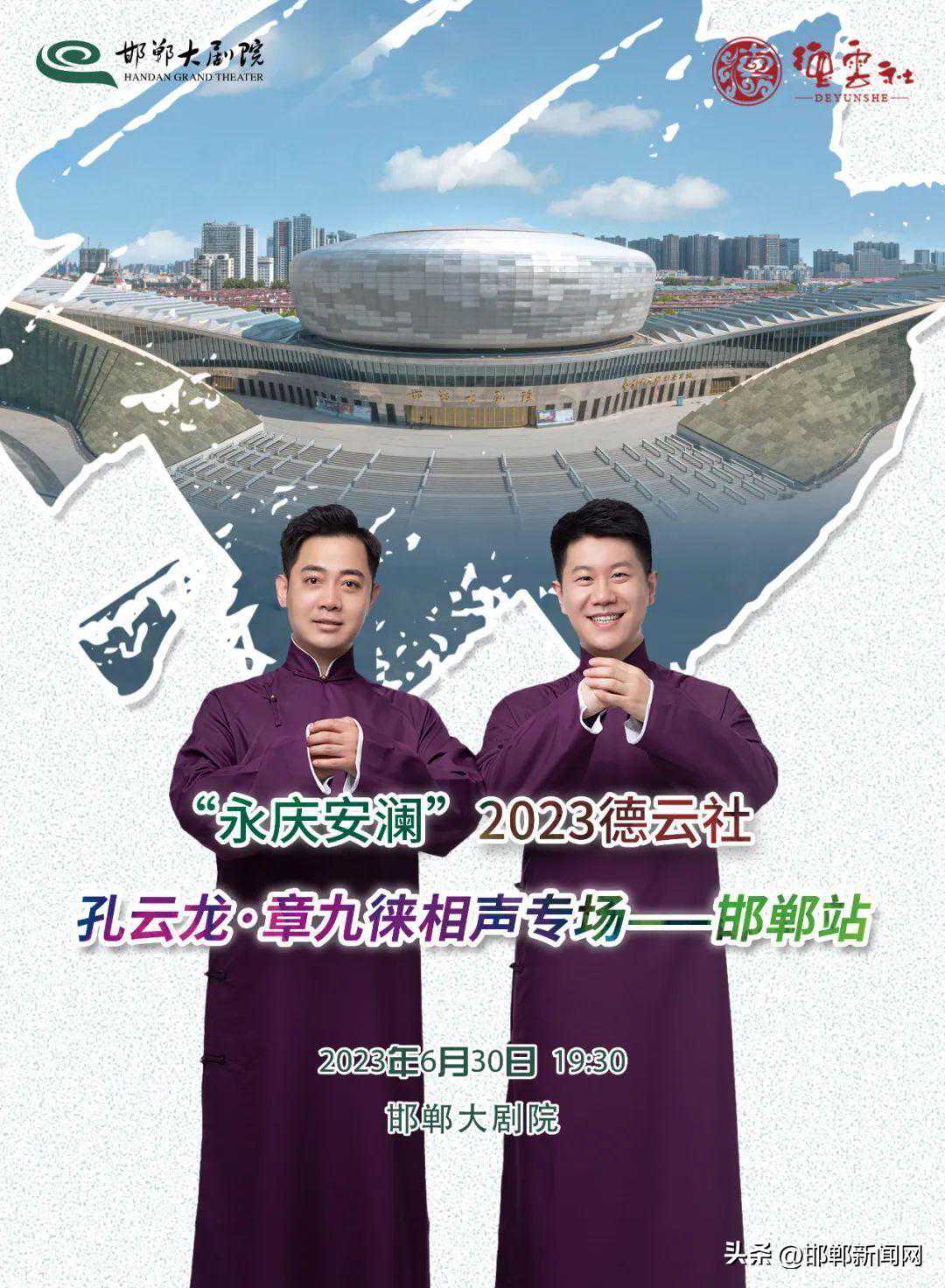 “永庆安澜”2023德云社孔云龙·章九徕相声专场-邯郸站将于6月30日在邯郸大剧院精彩上演,这一次他们要为大家开启一场引爆全城的相声盛宴。