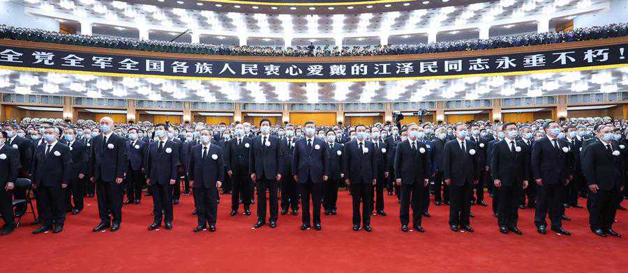 12月6日,中共中央、全国人大常委会、国务院、全国政协、中央军委在北京人民大会堂隆重举行江泽民同志追悼大会。新华社记者丁海涛摄