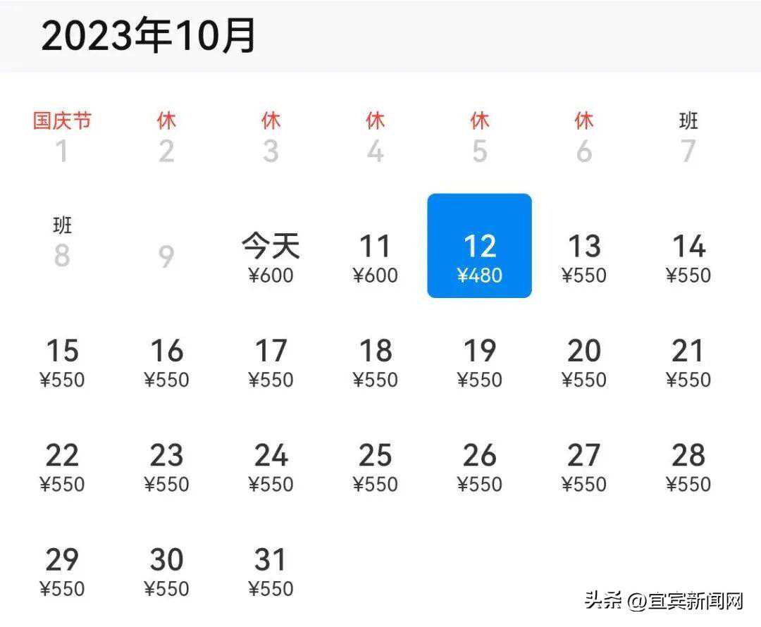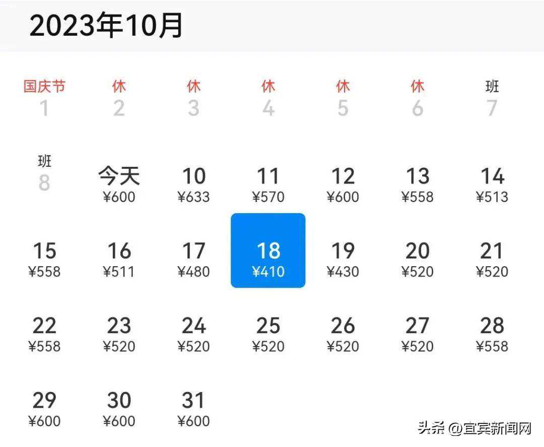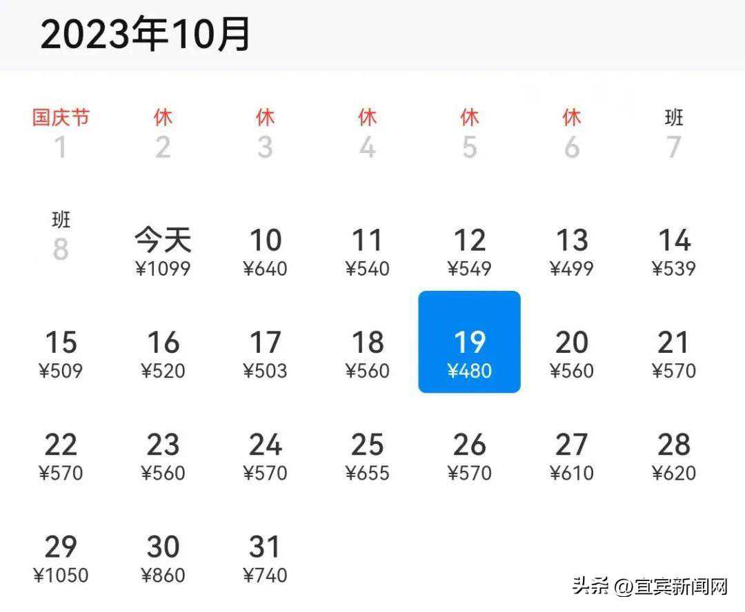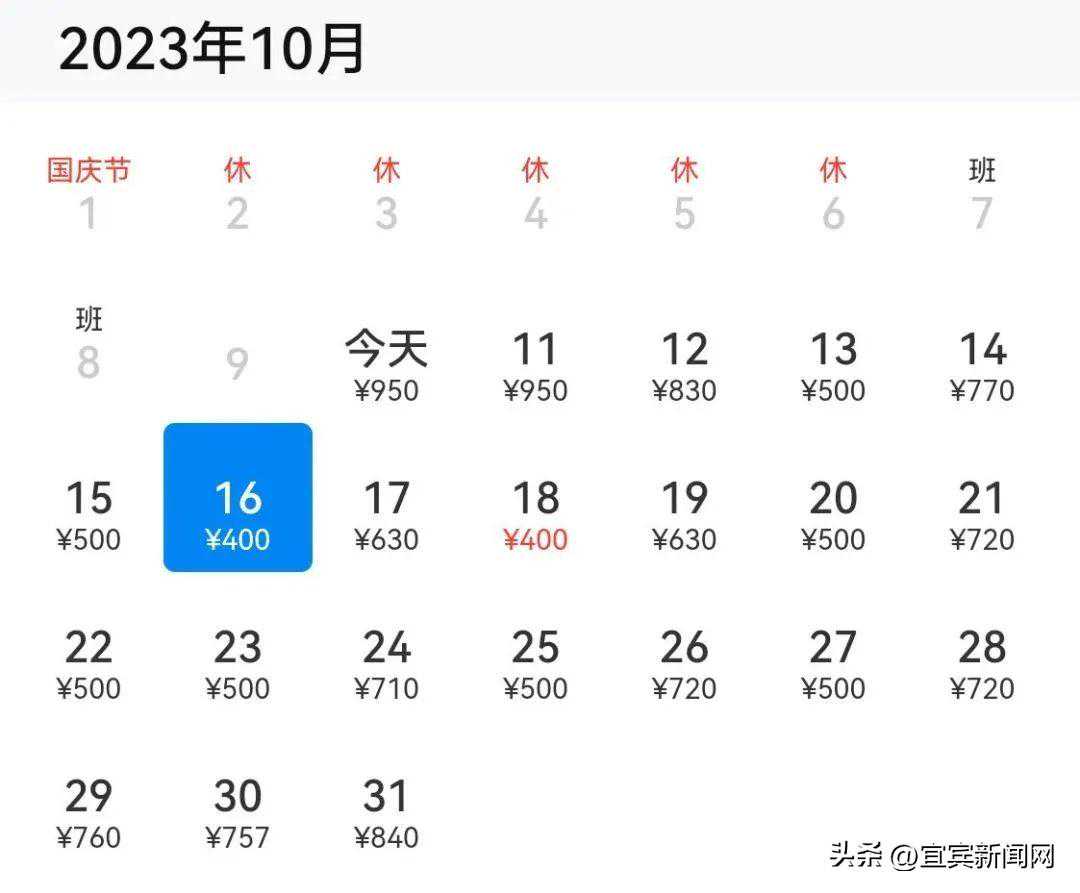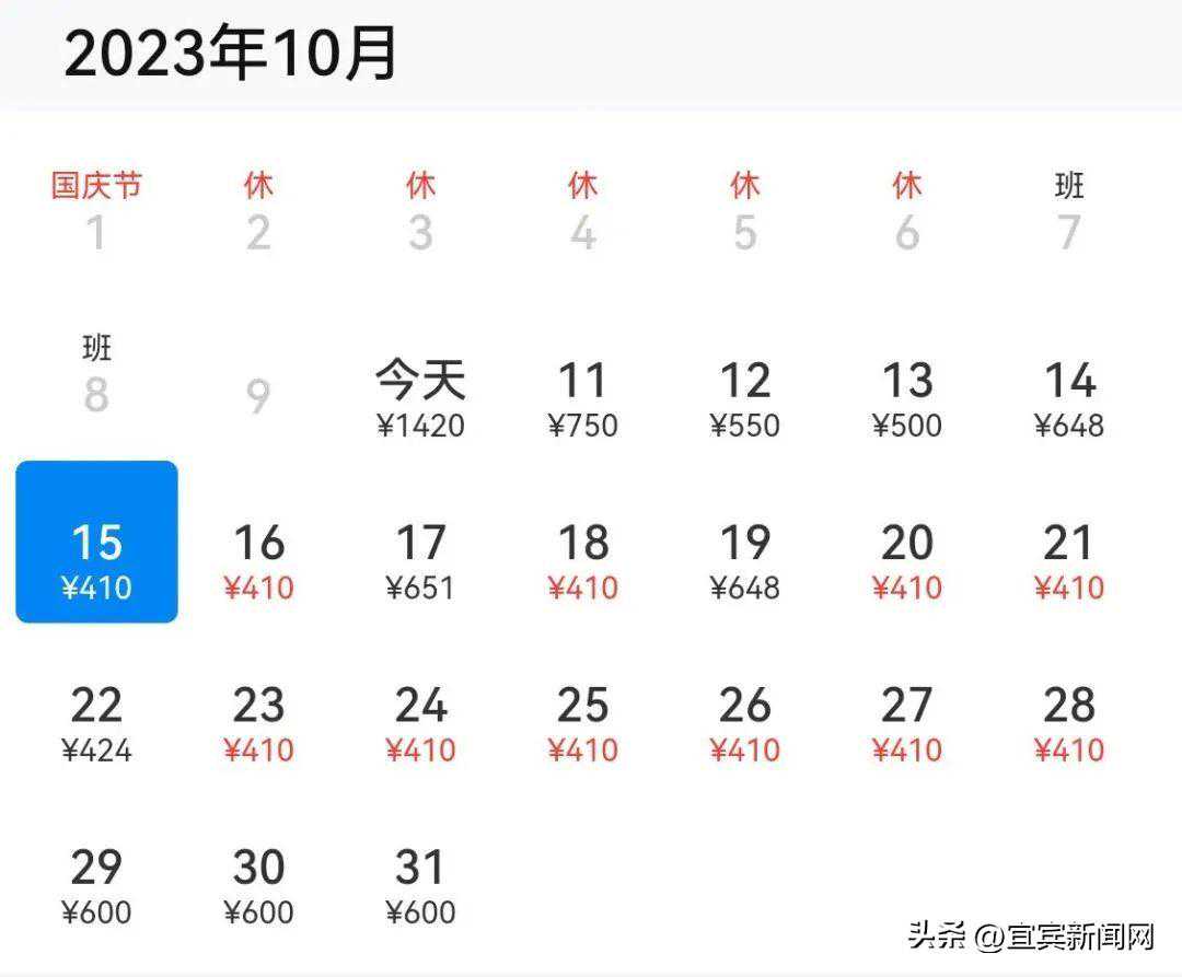 宜宾→北京,最低430元
