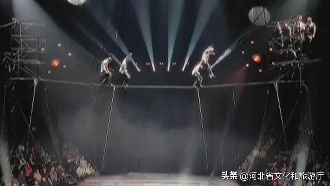 最后一个是由德国、哥伦比亚、阿根廷演员表演的《高空钢丝》,在距离舞台地面十几米的高度,完成“单人跳跃三人”“双人同时跳绳”“三对二节造型”“自行车金字塔造型”等一系列高难度技巧,堪称惊、险、奇、难,充分体现了杂技艺术的无穷魅力。