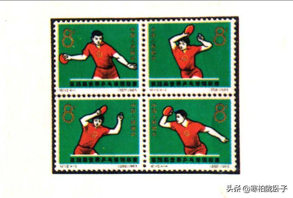 我国第一套四方连邮票是1965年4月25日,发行的《第28届世界乒乓球锦标赛》纪念邮票。图中男女运动员拼搏奋战,为国争光。(❽附图如下:请欣赏⇊)