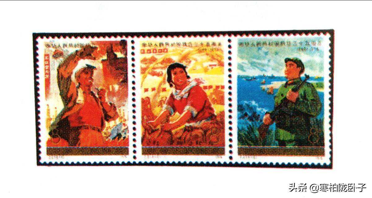 1974年10月1日新中国成立二十五周年,又以三连票的形式发行邮票1套。这3枚邮票分3个图案,面值是相同的,图案分别是工业学大庆、农业学大寨、祖国领土神圣不容侵犯。表现了中国人民在共产党的领导下,团结一心,争取更大的胜利。这套邮票目前市场价值人民币200元左右。(❼附图如下:请欣赏⇊)