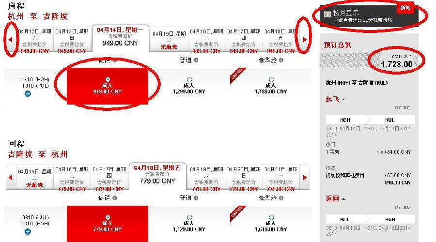 此次大促是亚航X线路,所以选择出发地-杭州,目的地-吉隆坡即可