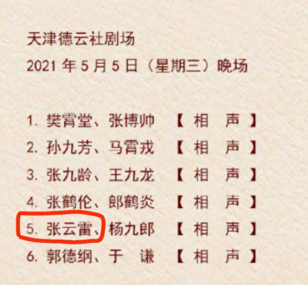 从节目单中也可以看到张云雷也将复出,不过他和老搭档杨九郎只在5月5日晚场有一次演出。