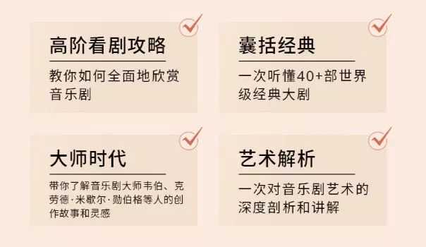 但是在音乐剧之外,我们的知识土壤、氛围还是远远不够,当观众感觉不够过瘾,还想要了解更多的背景、知识、行家点评内容时,常常苦于找不到靠谱的渠道。为此,我们邀请到国内音乐剧制作第一人“费老”费元洪,来为我们全方位地讲解西方最为经典的35部音乐剧,从背景、到欣赏方法、到音乐细节,为你储备足够的音乐剧入门知识,听完这门课,你将会是朋友圈里最懂音乐剧的那个人。