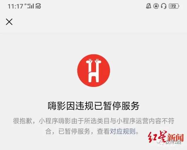 而早在6月4日,网上就已出现过投诉,“嗨影虚假宣传,套路诈骗,客服向我兜售嗨影卡购买后使用几次就封卡并迟迟不予解决。”次日,嗨影在该平台回复投诉者并留下联系方式:400-1520-568。而在红星新闻记者拨打该电话时,已显示无法接通。微信登录“嗨影”小程序也显示“已暂停服务”。
