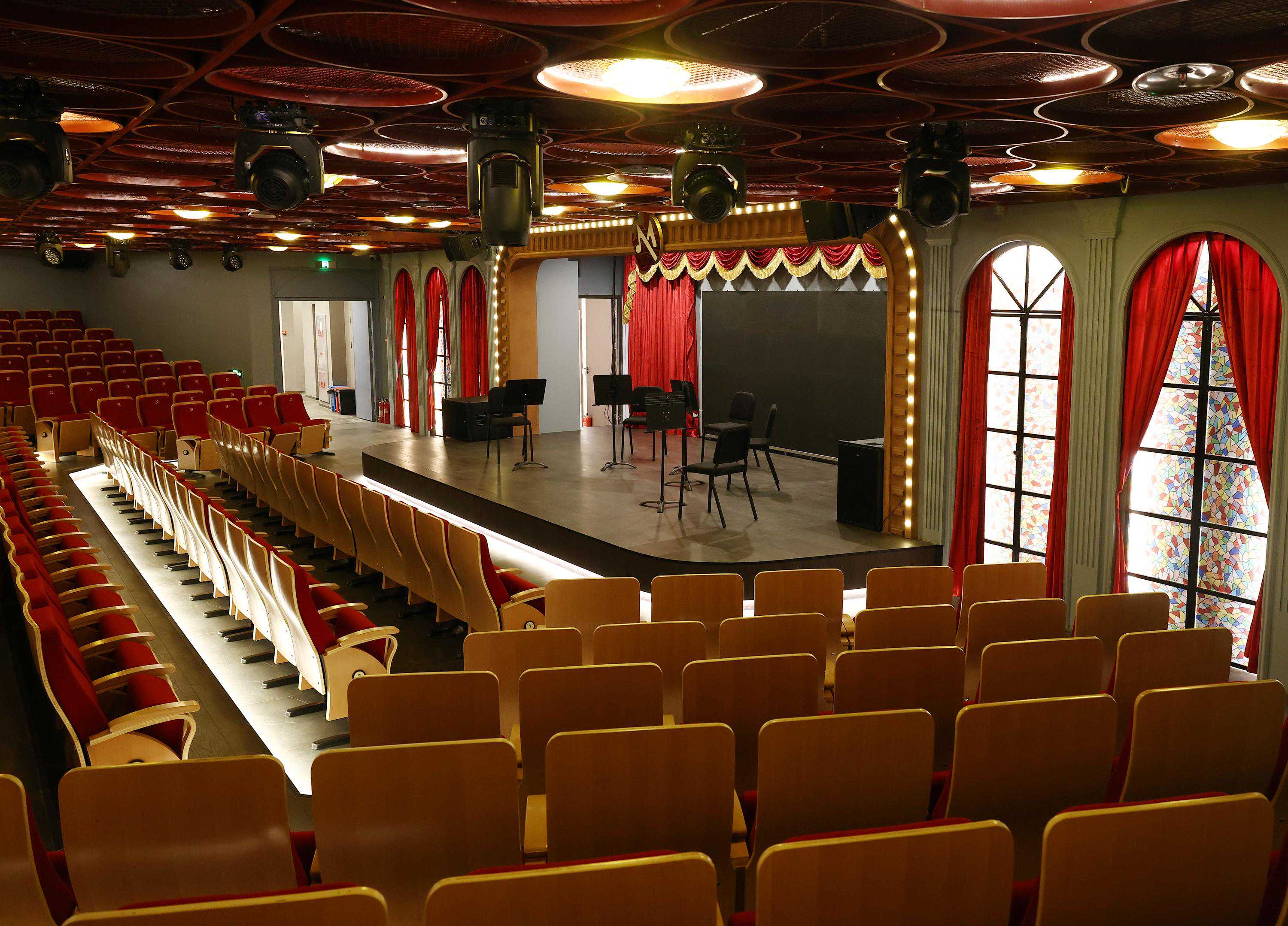 常营·爱乐汇艺术空间城市演奏厅内景,舞台为木制八音盒形态。