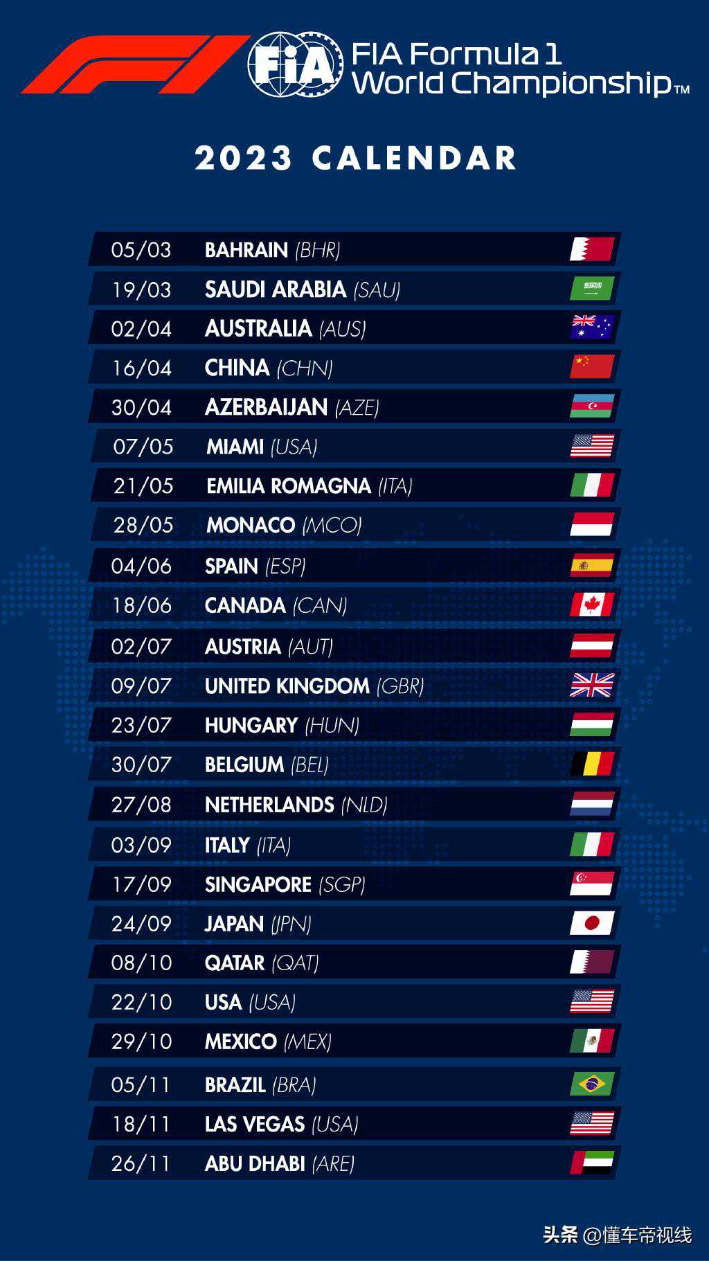 [懂车帝原创产品]日前,我们从相关渠道获悉,F1世界锦标赛公布了2023赛季初版赛历,该赛历已经获得世界汽车运动理事会的批准。
